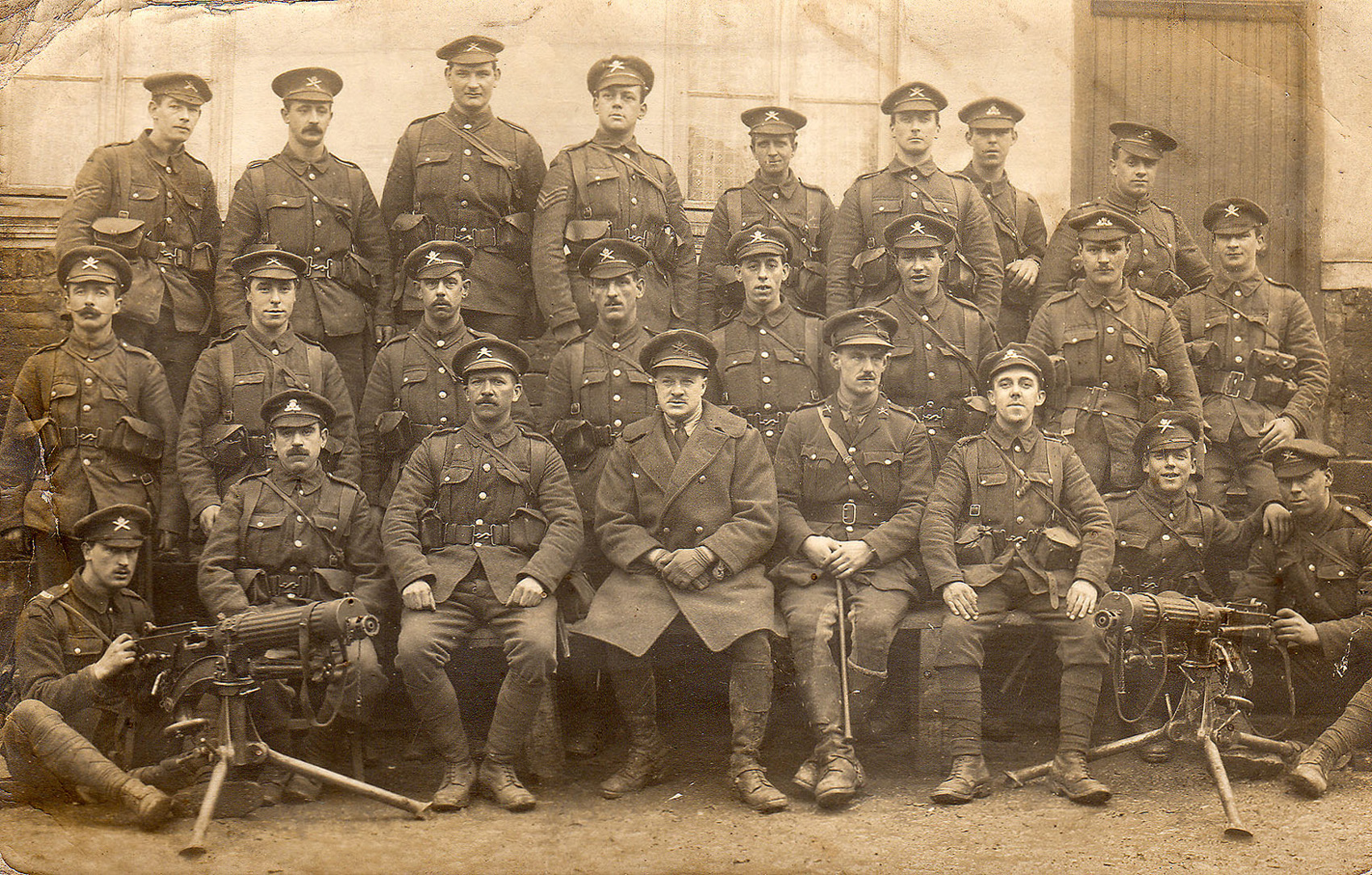 Henry SARGEANT (2nd row, 3rd left), with some of his comrades from the Machine Gun Corps. (The photograph was probably taken in France).