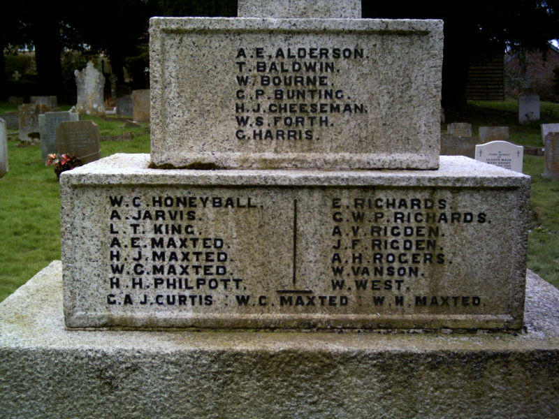 The memorial stands in the churchyard of Ss Peter & Paul, Temple Ewell village.